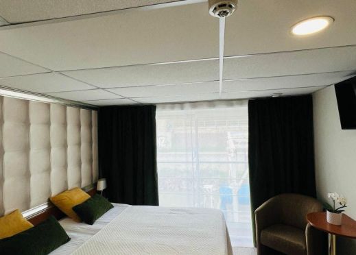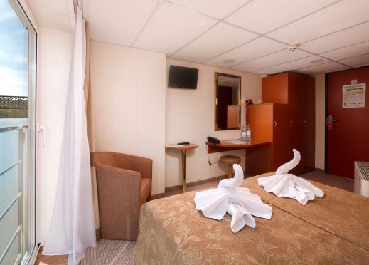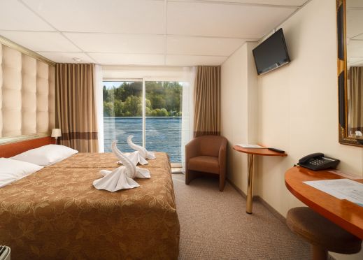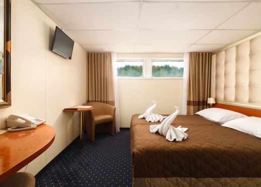 . Каютите са разположени на 3 палуби, като на основна палуба разполагат с илюминатори, които не се отварят, на средна с прозорци и на горна с големи френски прозорци, които се отварят. Всички каюти имат индивидуален климатик, сателитна ТВ, сешоар, баня и тоалетна.
