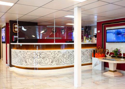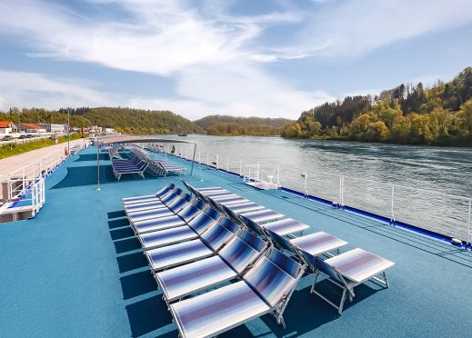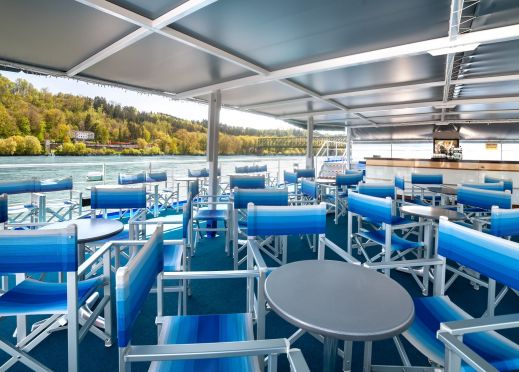 На борда ще откриете, ресторант, панорамен бар, слънчева палуба с шезлонги и басейн, малък фитнес и сауна.