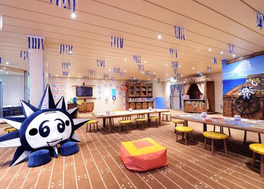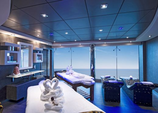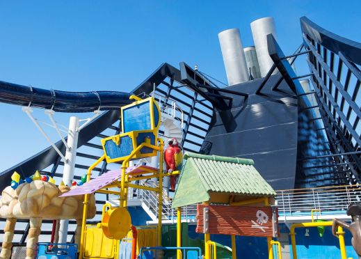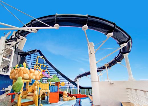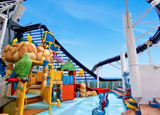 4 басейна, 12 джакузи, 120 метрова водна пързалка, плажна зона с шезлонги на откритата палуба.