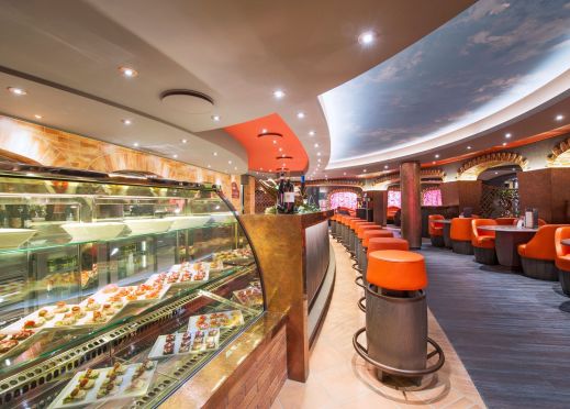 2 основни ресторанта, 2 бюфет ресторанта, Butcher`s cut – американски стек хаус, Суши ресторант, 9 бара на закрито и 3 на откритите палуби, дискотека.