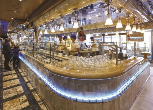На борда има 8 места за хранене и 11 бара. Между тях основен ресторант, пицария, бюфет ресторант на самообслужване, джелатерия Амарило с италиански занаятчийски сладолед, винотека, немска бирария, ресторант Тепаняки с японска кухня.