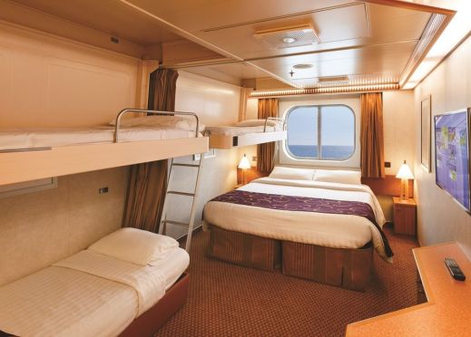 Каюти с балкон, каюти с прозорец / не се отваря /, вътрешни каюти, каюти за инвалиди. Всички с интерактивна ТВ, телефон, сейф, минибар, климатик, интернет срещу заплащане.