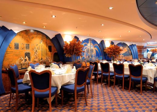Ресторанти: 2 основни, пицария и бюфет на самообслужване, включени в цената на круиза и ала карт – суши бар.