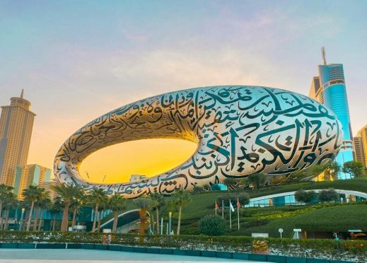 Музеят на бъдещето в Дубай е едно от най-впечатляващите и авангардни културни пространства в света, посветено на технологиите, изкуствения интелект и бъдещето на човечеството. Самата сграда е архитектурен шедьовър – футуристична форма без ъгли, обвита в метални панели с елегантна арабска калиграфия, символизираща връзката между традиция и иновация.
