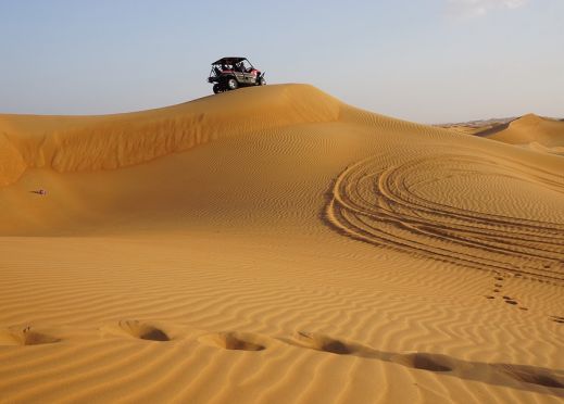 Тази екскурзия е перлата в короната на вълнуващите приключения в Дубай. Неописуемо удоволствие ще ви достави това офроуд преживяване, тази дива езда по червените пясъчни дюни. Срамежливо залязващото слънце ще добави мека светлина и романтика, а пустинният пейзаж ще ви приканва да навлезете все по-дълбоко и по-дълбоко в сърцето на пустинята. Ще спрете сред червените дюни, за да опитате вкуса на арабското кафе и гостоприемството към странника. След залеза на слънцето ще пристигнете в бедуинския лагер, където ще бъде сервирана вечерята под открито небе. Тук ще може да нарисуват ръцете ви с къна, да пушите шиша /наргиле/, да яздите или просто да се снимате с камила – всичко това на фона на арабска музика и бели денс.
