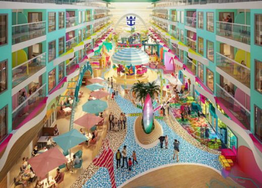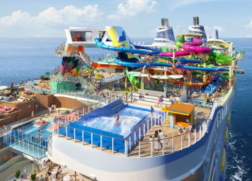 - Описание на кораба: „Icon of the Seas“ е най-големият круизен кораб в света, управляван от Royal Caribbean. Той може да побере 5610 пътници при двойно настаняване или 7600 при максимален капацитет и има екипаж от 2350 души. Корабът е известен с многобройните си квартали, всеки от които предлага уникални преживявания, както и с широка гама от възможности за хранене, забавления и дейности.