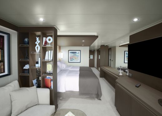 - Описание на апартаментите Ocean Terrace Suite OT1 – разположени на деск 6 в средата и деск 7 в предната и задната част Характеристики на апартаментите: Всички апартаменти са с изглед море/океан. Обща площ на апартамента: 35 кв.м Апартамент: 28 кв.м Баня: 4 кв.м Тераса: 7 кв.м Максимален капацитет: 2 възрастни и 1 дете до 18г Големи прозорци от пода до тавана с изглед към морето Дневна зона с маса за кафе и хранене Бутилка Veuve Clicquot Yellow Label за добре дошли в апартамента Мини-бар, допълващ се според предпочитанията на гостите Машина за еспресо, чайник и кана за чай с безплатна селекция от кафе и чай Безплатна персонална бутилка вода за многократно пълнене за всеки гост Чифт бинокъл за ползване от гостите по време на пътуването им Възможност за включване на повечето таблети и лаптопи Просторна тераса с кът за хранене към океана Удобно легло за почивка на терасата Голямо легло - размер: 180 x 200 см. Някои апартаменти са с две единични легла - размер: 2 x 90 x 200 см Пухени завивки и възглавници Фино спално бельо от Frette Богат избор на възглавници Просторен гардероб Просторна баня с душ кабина и подово отопление Плюшени халати от Frette Тоалетни принадлежности и принадлежности за баня Dyson Supersonic TM сешоар и осветено огледало за грим/бръснене