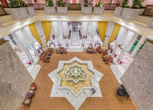 Основен ресторант Shehrazad, а ла карт ресторант Alhambra (платен, едно безплатно посещение на престой, след предварителна резервация), а ла карт Capri с италианска кухня (платен, едно безплатно посещение на престой, след предварителна резервация), бар басейн Al Khayem (през висок сезон), лоби бар Al Waha, снек ресторант Murjana, мавританско кафене Ali Baba (срещу заплащане), 3 открити басейна, 1 закрит отопляем басейн, 2 тенис корта, лека анимация, денонощна рецепция, СПА център, обмяна на валута, 2 конферентни зали.