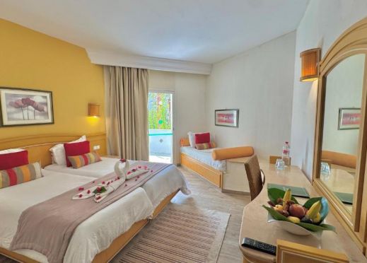 Хотелът разполага с 298 стаи, разположени в четириетажна сграда с асансьори - Standard Room (30-40 кв.м) с изглед градина или басейн.