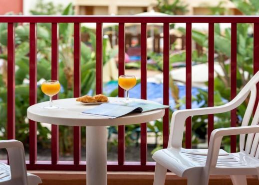 • Стандартна стая с гледка към басейна (24 кв. м.) Капацитет до 3 възрастни – Разполага със спалня и диван, климатик, минибар, тераса с гледка към басейна, както и самостоятелна баня с вана.