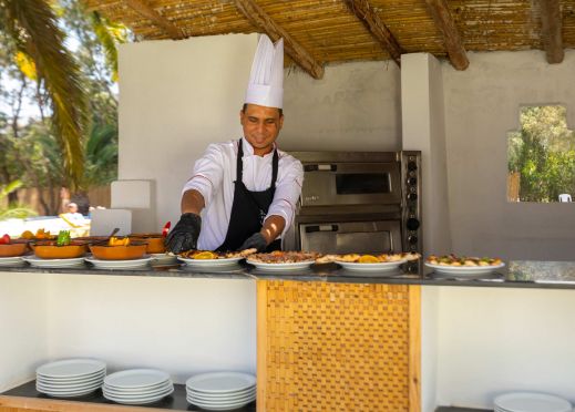 Основен ресторант Les Zinnias, а ла карт рестоирант Tunisiano с тунизийска кухня (платен, едно безплатно помещение на престой след предварителна резервация), лоби бар, бар басейн, плажен бар, диско бар (платен), мавританско кафене, анимация, аеробика, боча, мини голф, тенис корт, 2 външни басейна, единият от които с водни пързалки, сувенирен магазин, 24 часова рецепция.