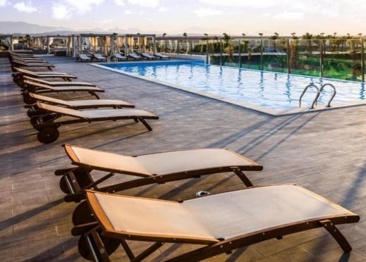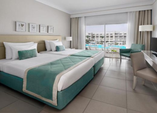 Делукс стая с гледка басейн -43 кв. м, спалня или две отделни легла, душ, тераса/балкон, сешоар, сейф . Максимално настаняване - 2-ма възрастни+1 дете.