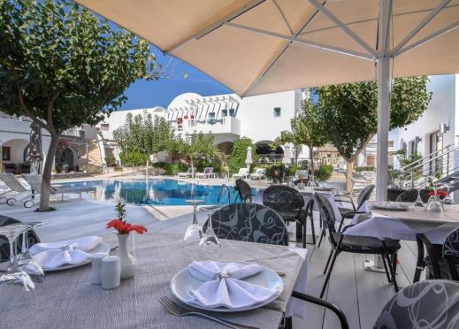 Хотелският комплекс се намира на 8 километра от столицата на остров Санторини – Фира, а летището е на 4 километра от хотела. Комплексът е изграден с цел да осигури максимална почивка и комфорт на своите гости и разполага с много удобства и модерни съоръжения. Комплексът е с концепция: