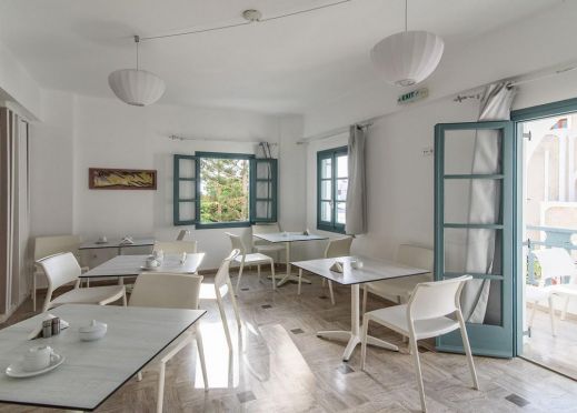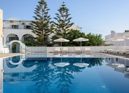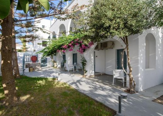 Хотелът се състои от 2 сгради и е построен в модерна цикладска архитектура с много влияния от природата, наскоро реновиран. Намира се в много тих район, на 150 метра от плажната алея, където можете да намерите ресторанти, магазини и барове или просто да се разходите до плажа, за да се отпуснете. Хотелът предлага голям плувен басейн със снек бар, отворен през целия ден.