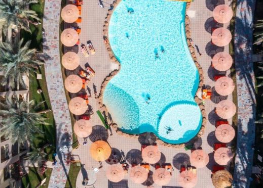 открити плувни басейна и един отопляем басейн през зимата, обхващащ 551 кв.м., джакузи с прясна вода, 451 кв.м. и 429 кв.м., отделен детски басейн 176 кв.м.
