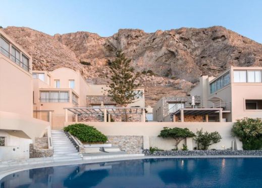 Разположен в сянката на Древна Тира, на тихо място на хълм, предлагащ прекрасна панорамна гледка към Камари и Егейско море,на 400м.от черния плаж Камари и в близост до алея с ресторанти, барове и магазини.