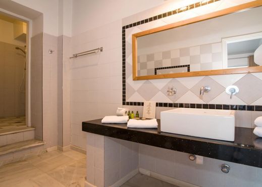Джуниър суитът с външно джакузи е просторен с двойно легло Queen size, кът за сядане с разтегателен диван и наскоро реновирана баня.Junior Suites са идеални за двойки, които искат да се насладят на луксозен живот в частен рай с прекрасна гледка към източната част на острова.