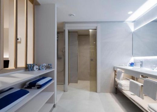 открити басейни за възрастни и деца, просторна слънчева тераса с шезлонги и чадъри, както и