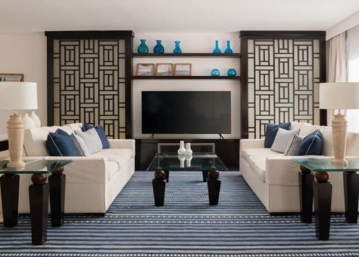 Хотелът разполага с 263 стаи, включително 78 свързани стаи и 174 семейни стаи, които осигуряват удобство за различни предпочитания. Стаите са просторни и елегантно обзаведени, с площ от 40 м² за стандартните стаи и 50 м² за семейните стаи. Всяка стая е оборудвана с климатик, минибар, телевизор с плосък екран, сейф, телефон, апарат за кафе/чай и балкон или тераса с изглед към морето или градините.
