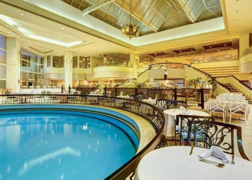 Гледащ към основния басейн, тук е мястото където ще можете да се насладите на закуската, обяда и вечерята си.