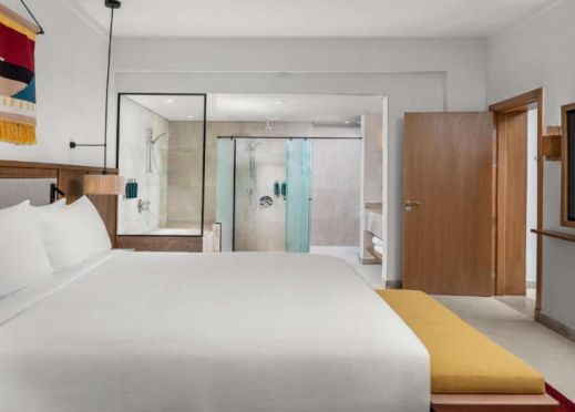 Гостите могат да се насладят на безплатни топли напитки от удобствата за приготвяне на чай и кафе или охладената минерална вода от мини хладилника. За ваше удобство стаята за гости King Hilton предлага душ в банята, 220-волтови електрически контакти, контакти за самобръсначка с 110 и 220 волта, както и регулируема температура. Капацитет на 2-ма възрастни и 1 дете под 12 години