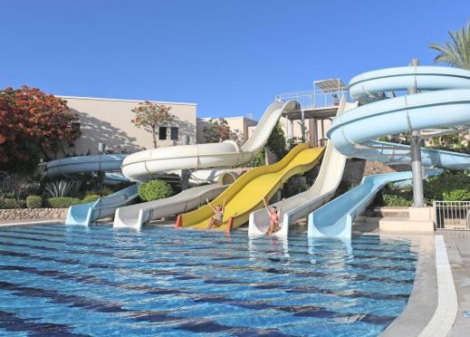 Басейнът към хотела е оформен стилно като числото осем точно в центъра на хотела. Отоплява се в периода ноември-април, а за децата има и отделен басейн. Хотелът разполага и с мини аквапарк с улеи, пързалки и спирала. Има 5 големи пързалки за големи и 1 пързалка за деца.