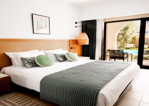 Хотелът разполага с общо 248 стаи, разположени в 2-етажна основна сграда и 2-етажна допълнителна сграда -Standard Room (19 кв.м), Standard Room Sea Side/Pool View (19 кв.), Annex Room (24 кв.м), Family Room (33 кв.м), Swim Up Room (с директен достъп до басейна).