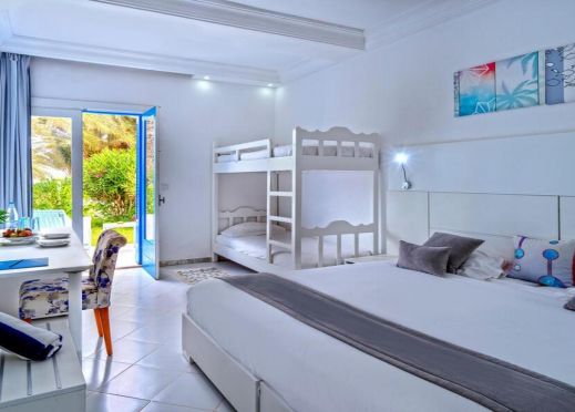 Хотелът разполага с общо 212 стаи в двуетажната сграда и 9 двуетажни бунгала на площ от 60 000 кв.м., без асаньор - Standard Room (22-26 кв.м.), Sea Side Room (22-26 кв.м. които са в по-голяма близост до морето), Family Room (24-28 кв.м), Family Superior (36-38 кв.м. с 2 спални, разположени в бунгала).