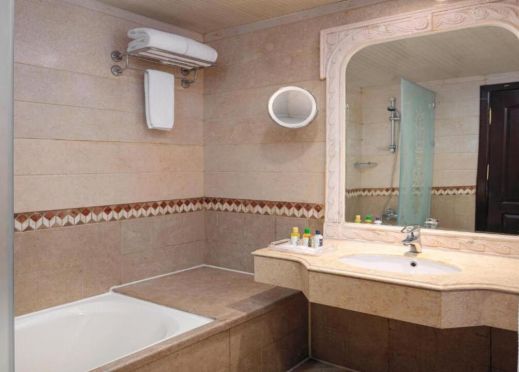 Хотелът е луксозен комплекс с ориенталска архитектура и просторна градина. Разполага с основна сграда и няколко допълнителни крила, предлагащи разнообразие от удобства. Подходящ е както за семейства с деца, така и за двойки, търсещи спокойна почивка.  Собствен, с коралов риф. Чадъри, шезлонги и матраци на плажа и при басейна - безплатно. Плажни кърпи – безплатно.