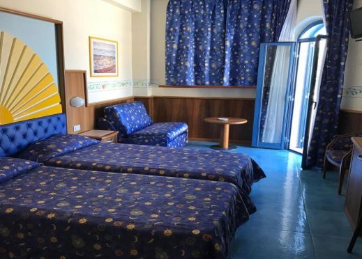 Стаите са просторни и са обзаведени с удобни мебели и мокет на пода. Всички стаи разполагат с баня с душ, климатик (от 15.06 до 15.09), телевизор, малък хладилник, сейф, сешоар. Има възможност за избор между супериор стаи с гледка море (към крайбрежната улица „Via Lungomare Schisò“) или стандарстни стаи с изглед към вътрешната улица „Via Naxos“.