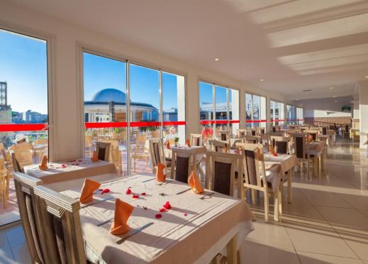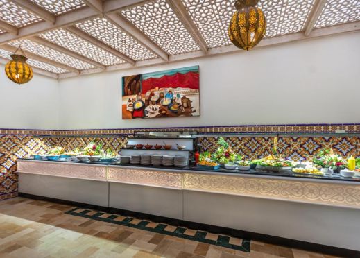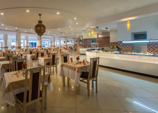 Основен ресторант, лоби бар, снак бар на басейна, мавританско кафене, открит басейн, закрит басейн (отопляем през зимата), аква парк (2 басейна, 10 водни пързалки: 5 пързалки за възрастни, 5 пързалки за юноши, басейн с мини пързалки за малки деца), СПА център, конферентна зала, магазини, обмяна на валута.