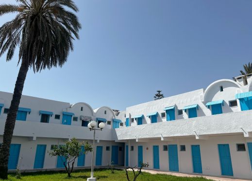 Намира в района на Сус, на 31 км от летище Енфида, на 10 км от центъра от Порт Ел Кантауи, на 19 км от Медината, на брега на морето.