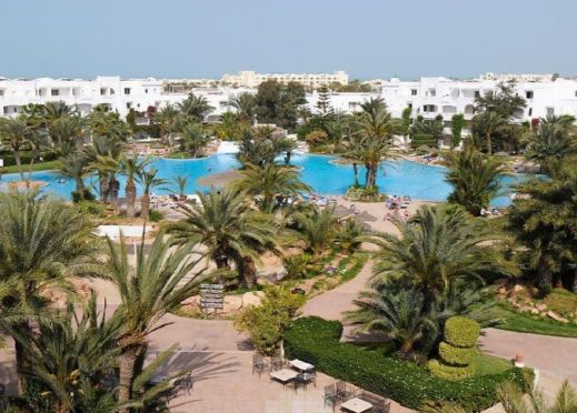 Djerba Resort е разположен в туристическата зона на остров Джерба – Midoun, на около 400 метра от плажа и 20 км от международното летище. Хотелът се намира сред зелени площи и градини, в близост до магазини и ресторанти, и предлага лесен достъп до град Houmt Souk (13 км). Районът е спокоен и подходящ за семейства и почивка.