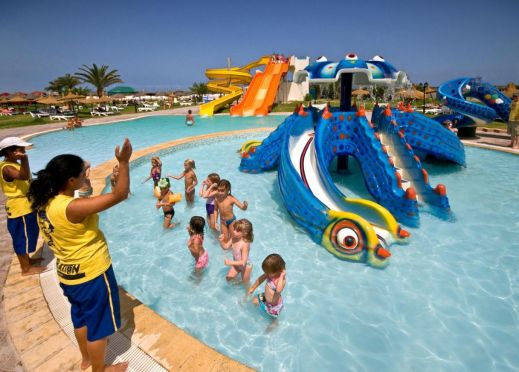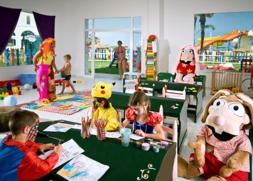 За децата: детски басейн с мини пързалки, втори детски басейн, детска площадка, мини клуб (4 -12 год.) д), бебешка кошара (безплатно, след предварителна заявка, според наличността), детски столчета в ресторантите.