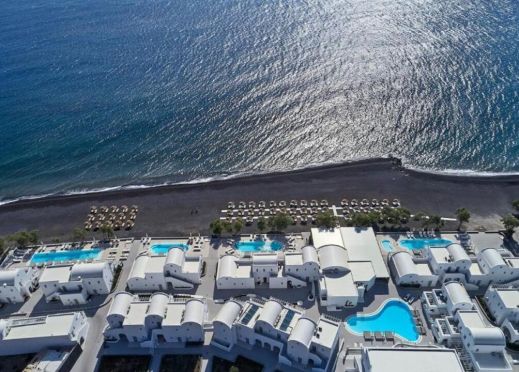 Costa Grand Resort & Spa е курорт, разположен точно на плажа с черен пясък в известното и космополитно село Камари.
