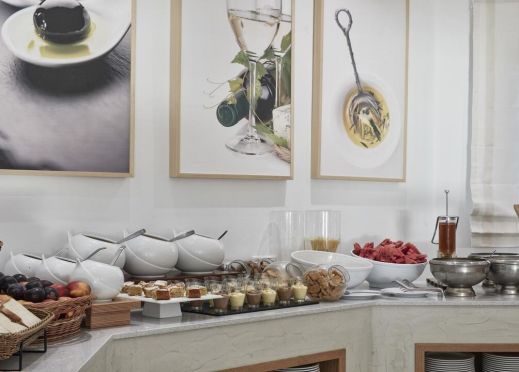 За закуска или вечеря елегантната обстановка създава спокойна атмосфера, съчетана с най-добрите и внимателно подбрани суровини. От средиземноморски рецепти до изкушаващи интернационални ястия и традиционни гръцки специалитети, комплексyt предлага голямо разнообразие от възможности за хранене точно на плажа.