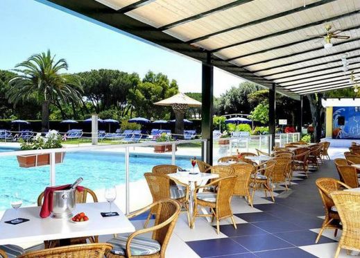 Ресторантът е открит от 3 страни, с изглед към градините и пищната зелена гора. Отворен за закуска, обяд и вечеря, ресторантът е специализиран в южната италианска кухня.