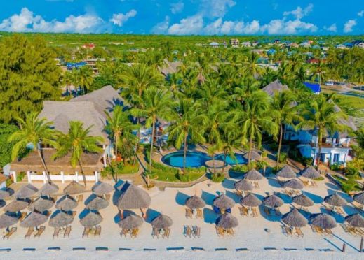 AHG Waridi Beach Resort and Spa е елегантен комплекс, съчетаващ традиционна занзибарска архитектура с модерни удобства. Сред зеленината на кокосови палми и тропически градини, хотелът предлага спокойна атмосфера и комфорт за двойки, семейства и групи приятели. Разполага с открит басейн с гледка към океана, спа център, фитнес зона и анимационна програма.