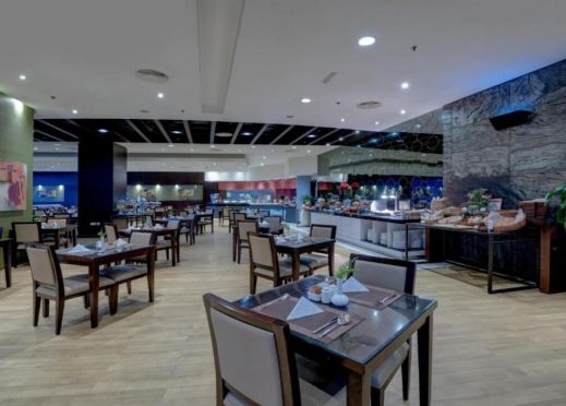 Основният ресторант предлага международна кухня и разнообразна селекция от ястия за закуска, обяд и вечеря. В лоби бара гостите могат да се насладят на напитки, кафе и леки закуски в спокойна атмосфера. Някои от заведенията работят до късно вечер, което осигурява удобство за гостите, пристигащи в по-късни часове.