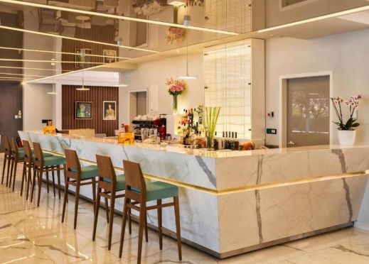 Бар с панорамна гледка към морето, перфектен за релаксация и наслаждаване на коктейли в приятна атмосфера.