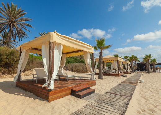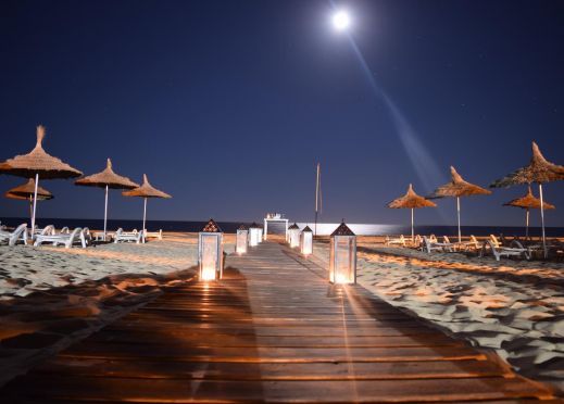 Собствен, широк пясъчен плаж пред хотела. Чадъри, шезлонги и матарци на плажа и при басейна - безплатно. Плажни кърпи – безплатно, срещу депозит.