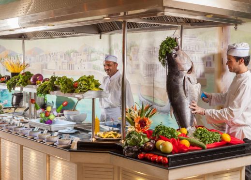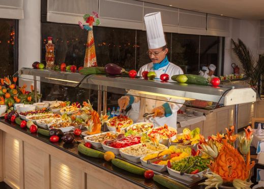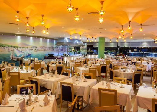 Основен ресторант Le Grand, два тематични а-ла-карт ресторанта Le Panache (едно безплатно посещение с 24 часа предварителна резервация), Dragon (ресторант с азиатска кухня, платен), снек ресторант до басейна и барбекю ресторант до плажа (работи само през висок сезон), лоби бар, бар басейн, диско бар Le Theatre, мавританско кафене, пиано бар Carillion (срещу заплащане), плажен бар, 1 открит басейн с бар, закрит басейн (отоплява се от ноември до март, денонощна рецепция, обменно бюро, конферентна зала, анимация, СПА център.