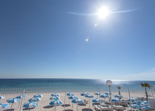 Собствен, пясъчен. Чадърите и шезлонгите на плажа и басейна - безплатно, матраци - срещу заплащане. Плажни кърпи не се предлагат.