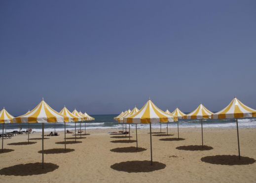 Собствен, на 200 метра от хотела, през път, пясъчен. Чадъри, шезлонги, матраци на плажа и басейна - безплатно, плажни кърпи - безплатно, срещу депозит.