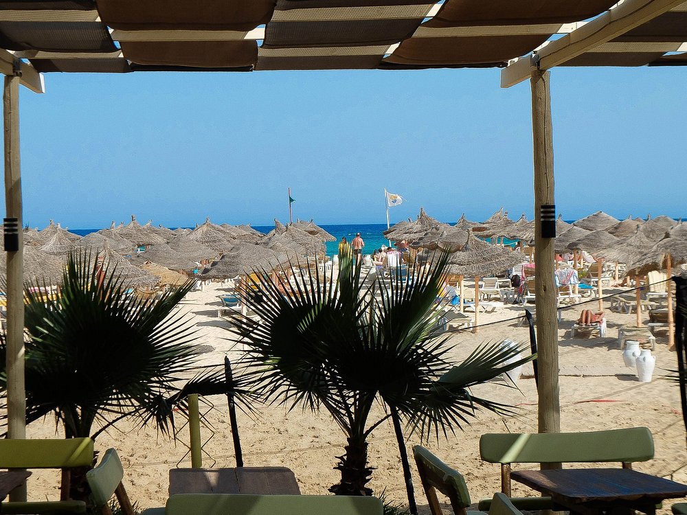 Собствен пясъчен плаж, на втора линия, на 650 м от хотела. Чадъри и шезлонги на плажа и басейна - безплатно.