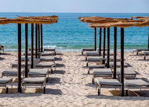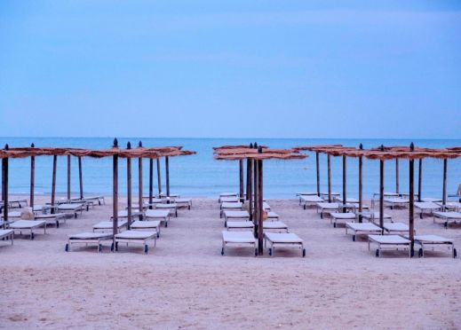 Частен, широк пясъчен плаж, първа брегова линия. Чадъри и шезлонги на плажа и при басейна - безплатно, плажни кърпи - безплатно. Сервират се плодове, вода, сокове, алкохолни напитки (при запитване).