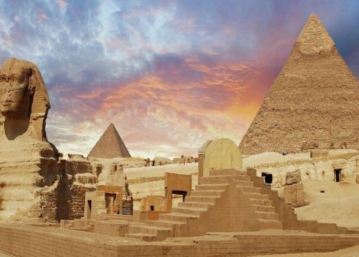 Посещение на известните пирамиди в Гиза. Пирамидите в Гиза от дълго време са най-посещаваната атракция около Кайро. От времето на тяхното изграждане пирамидите в Гиза въплъщават древността, мистерията и дават повод за невероятни хипотези. Пирамидите са единственото чудо на древния свят, което е оцеляло почти непокътнато. Погребалната голяма пирамида на Хеопс е най-старата в Гиза и най-голямата в света, изградена ок. 2500 г. пр.н.е. от близо 2,3 милиона варовикови блокове, тежащи средно по 2,75 тона и придвижвани от 100 000 роби. Трите по-малки пирамиди в съседство принадлежат на Хеопсовите царици или сестри. Сфинксът е разположен наблизо, странна фигура с тяло на лъв, лице на човек и царска брада.