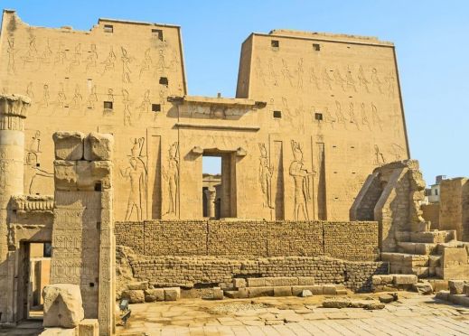 Строителството на Храма край Едфу е започнато през 237 г. пр.н.е., а е завършен двадесет години по-късно при династията на птолемеите в чест на Хор. Според преданията, този каменен монумент е построен на мястото, където се е състояла митичната битка между Хор И Сет. Истината обаче е, че това е последния от поредицата издигнати храмове тук като е завършен при Птолемей 12-и.