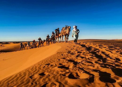 Закуска. Отпътуване за каньона на Река Тодра и град Тахир. Пътят ни преминава през оазиса “Ел Джорф“. Проломът е издълбан от двете реки Тодра и Даде и става най-впечатляващ край Тинерхир, където в продължение на 600 метра, стените на каньона са на разстояние 10 метра една от друга, като се извисяват на 160 метра височина и сменят цветовете си с напредването на деня, според легендата. Пристигане в Ерфуд - наречен още "Портата на пустинята". В древни времена малкият град Ерфуд, намиращ се близо до границата с Алжир, е служил като добре укрепен пост на френските колониални войски в Мароко. Отпътуване по пътя на ралито Париж-Дакар, посока алжирската граница и гр. Мерзуга, за да попаднем в плен на мистериозния изоставен свят сред безкрайните пясъчни дюни -Ерг Чеби, където живеят берберски племена. Настаняване в началото на пустинята в лагер Kasbah Laila 4* или подобен. Типична мароканска берберска вечеря. Нощувка.