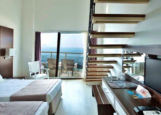Хотелът разполага 137 стаи, от които 127 стандартни (103 с изглед море и 24 с изглед градина, 20-24 м²), 8 дуплекс фамилни (2 единични легла на долния етаж и спалня на горния етаж, без свързваща врата, 25-26 м²), 1 суит и 1 disabled (пригоденa за хора с ограничена подвижност - 30 м²). Всички стаи са оборудвани с климатик, телевизор, телефон, баня с душ/вана, сешоар, минибар, сейф (безплатен), балкон.